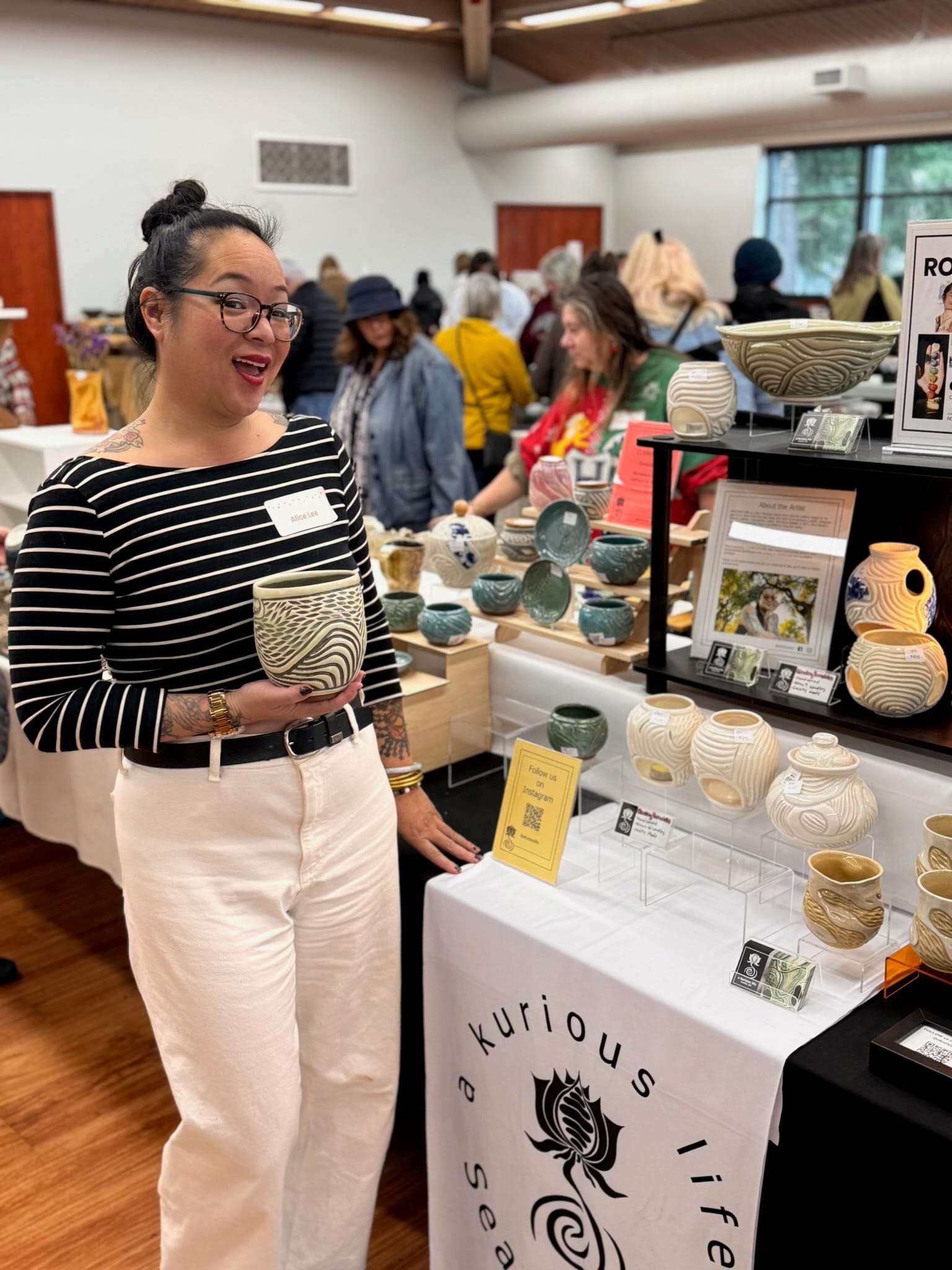 BURIEN, WA — Moshier Community Arts Center in Burien hosts two popular pottery sales each year, one in the spring and another during the winter holiday season. To learn more about the local artists behind the work, The Highline Journal attended the December 6, 2025 Holiday Pottery Sale, where City of Burien Recreation Supervisor Caroline Bobanick introduced us to five ceramic artists participating in the event.