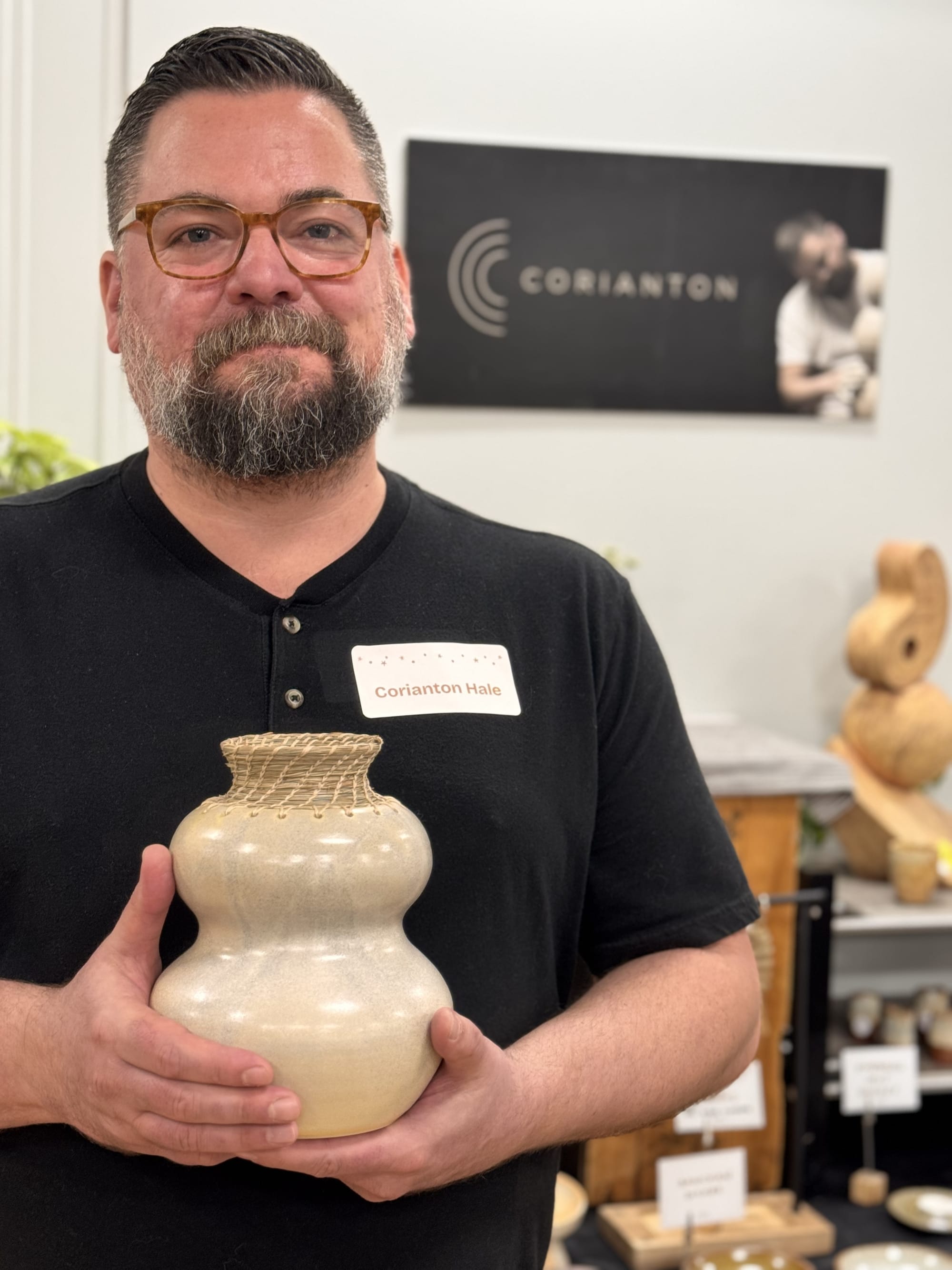 Corianton Hale was drawn to clay at an early age and found early success before stepping away to pursue other creative opportunities. After a 20-year career in graphic design and branding, he returned to ceramics in 2019 and is now a studio artist at Moshier.