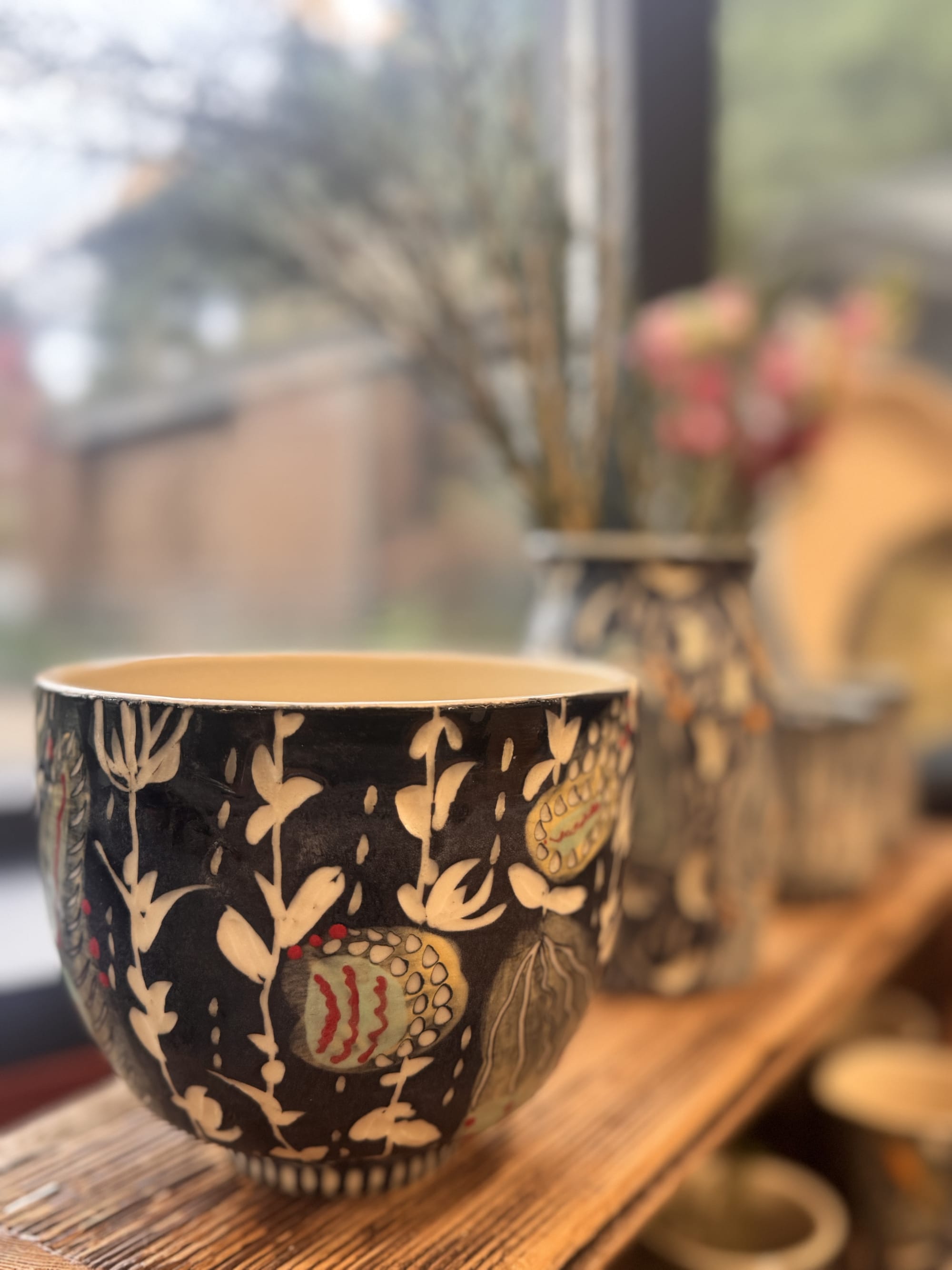 Many of the artists we spoke with did not begin their careers working full time in ceramics, but instead found creative ways to blend their professional backgrounds with a passion for clay. Three currently teach adult ceramics at Moshier Pottery Arts Center, one is a Highline Middle School visual arts teacher, and another balances his work as a Moshier studio artist with running a graphic design business.
