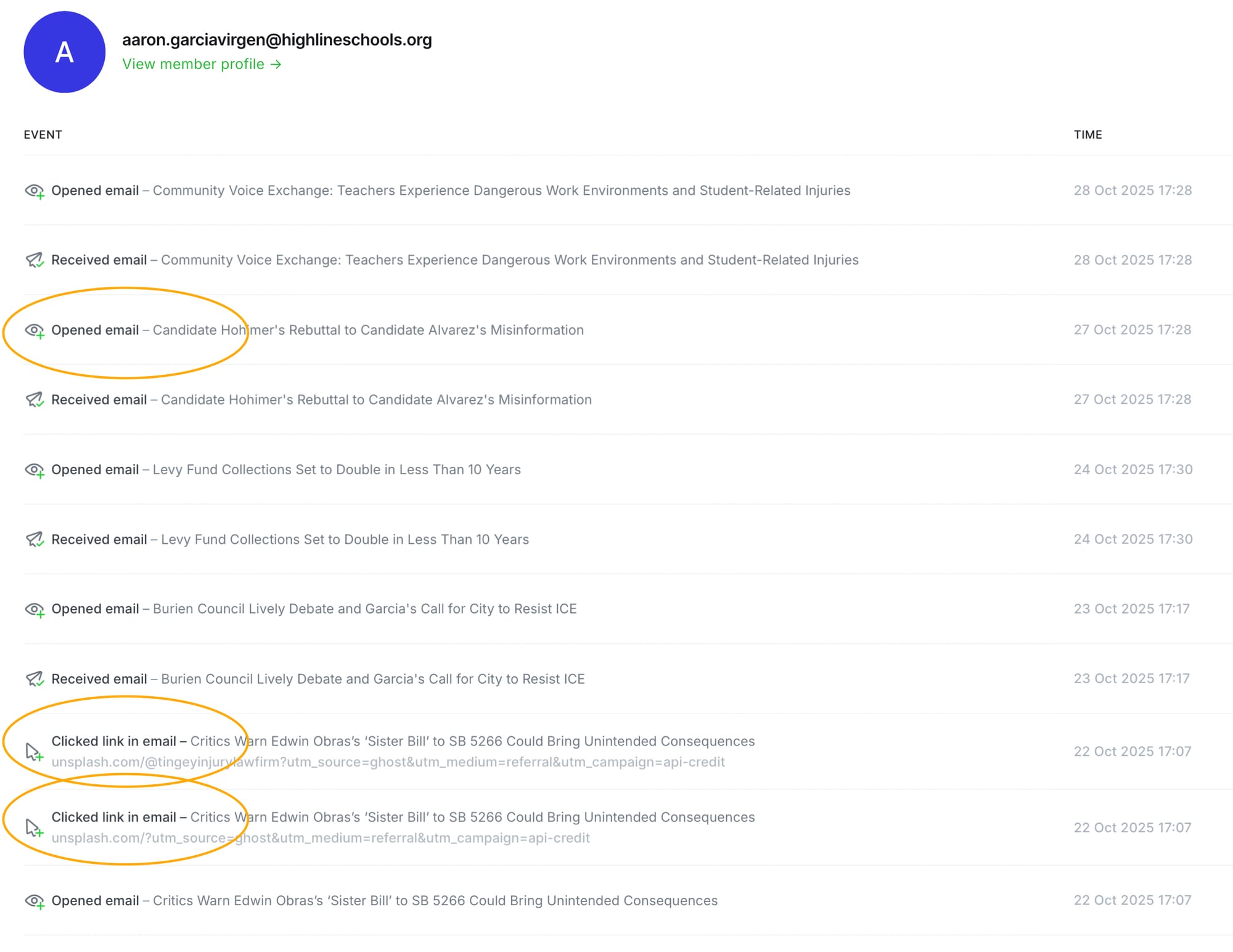 We reached out to the Highline School District for comment on the email activity we noticed on our end through our subscribers analytics pages and shared our concerns with them. Since publishing the first story, we have received two communications with explanations as to the possible "activity" we were observing: