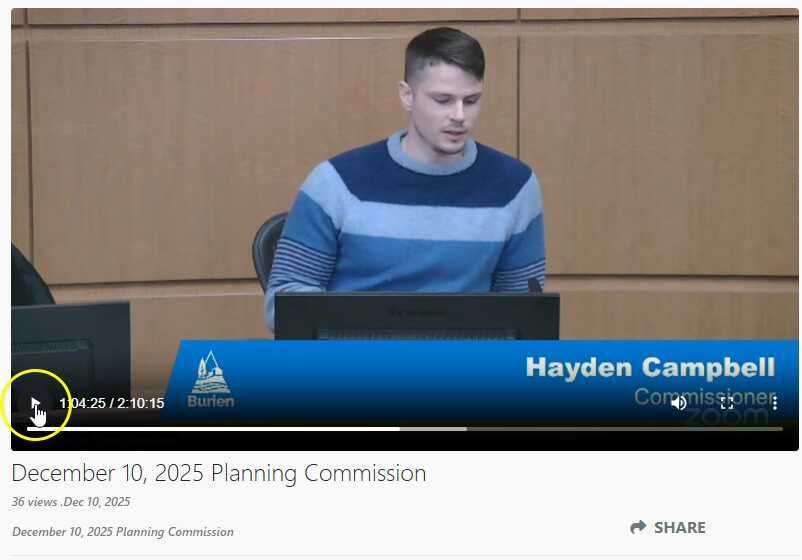 The hot-mic moment appears at approximately 1:04:30 in the city's meeting recording. The Highline Journal will follow up with the Burien Planning Department for a list of Zoom attendees and any additional information about the incident.