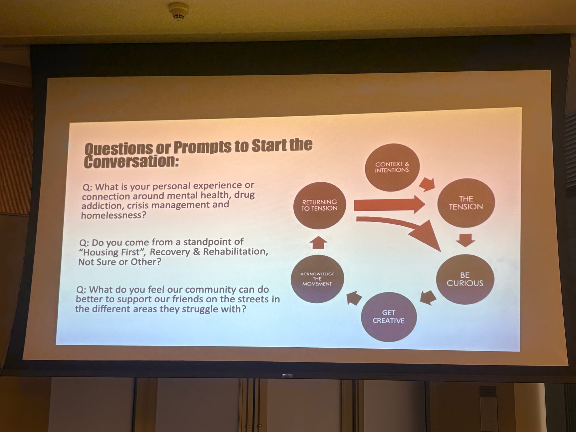 To set the tone, participants were introduced to “Rules of Engagement” intended to foster respect, dignity, and openness. They also received a brief training on the “Conversation Cycle,” a visual framework aimed at helping people navigate difficult discussions—particularly when engaging with opposing viewpoints.