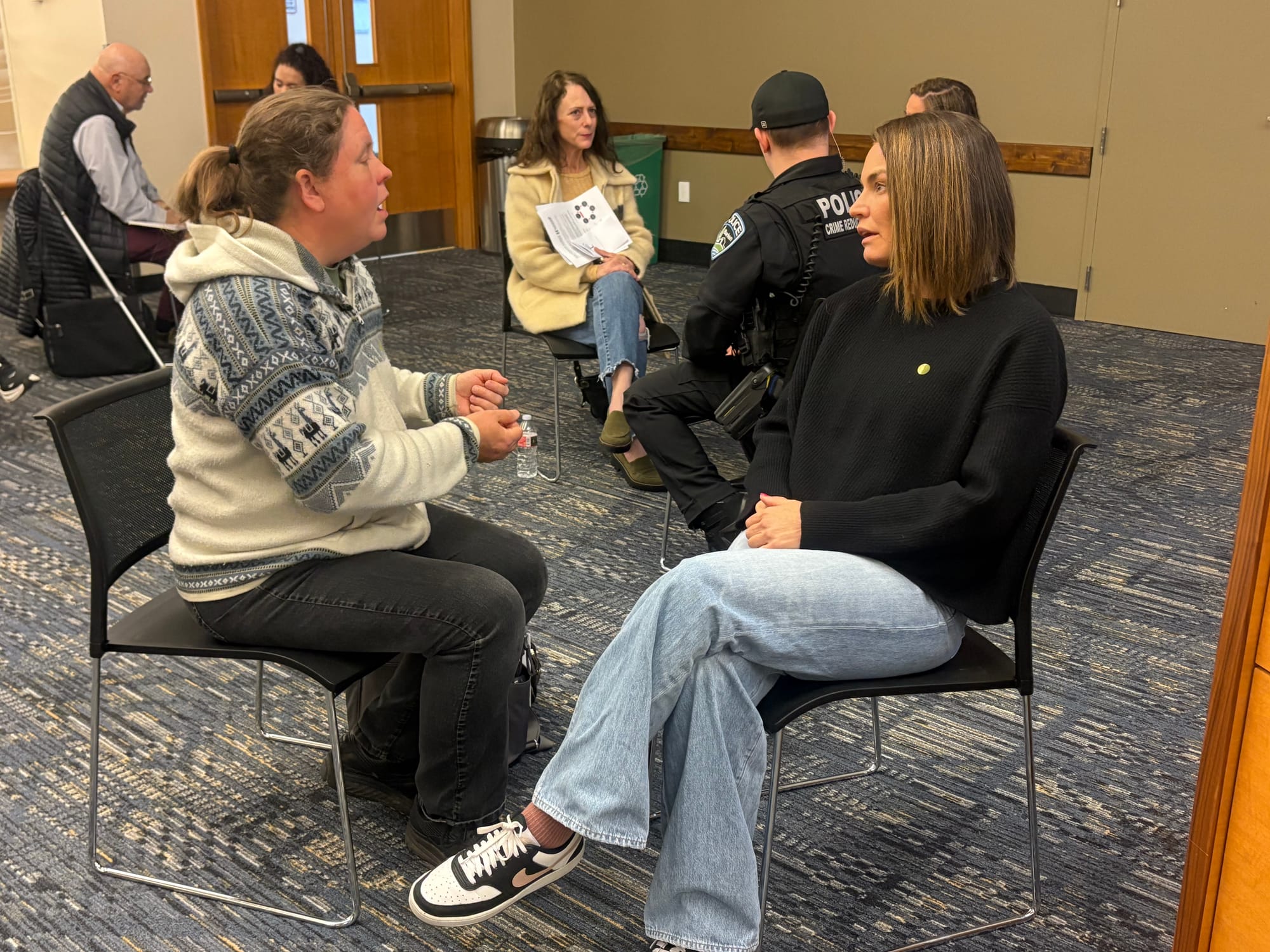 The event was led by Melissa Petrini, who manages the Highline Good Neighbors group. She introduced a discussion model designed to be replicated in other communities, with the goal of helping people connect across differences and engage in meaningful conversations.