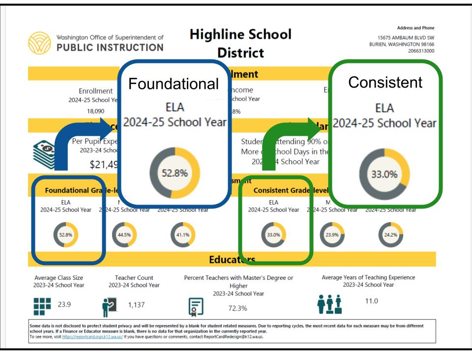 “In 2025, more Highline students scored at the very bottom (Level 1) in ELA than in the two years prior.”