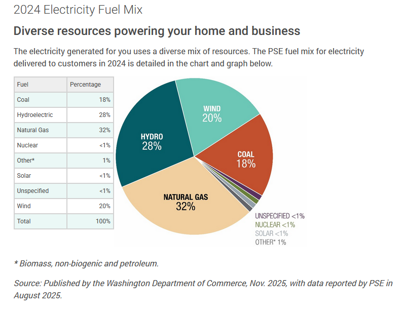 Yes. And not just because of the factors mentioned. Look at this pie chart from 2024 showing the sources of energy. Solar is less than one percent. Natural Gas and Coal together are 50%. PSE essentially needs to replace half of its electricity sources, plus handle growth in demand.