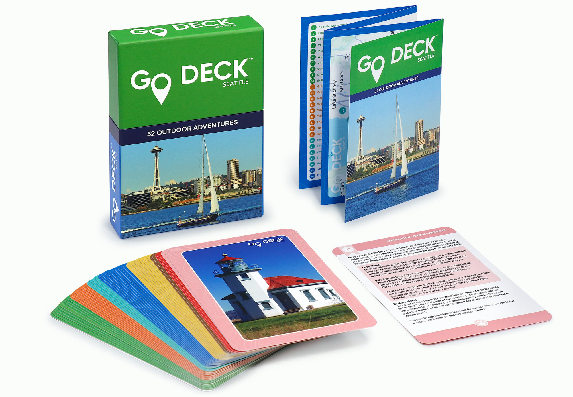 What started with GO decks featuring cities she knew and loved (including her hometown of Knoxville, TN, and San Diego), has released the GO Deck Seattle, and is now expanding to new places like Washington, D.C. and Dallas-Fort Worth. Deanna partners with local writers and photographers in each city to make sure every card captures its community’s unique charm.