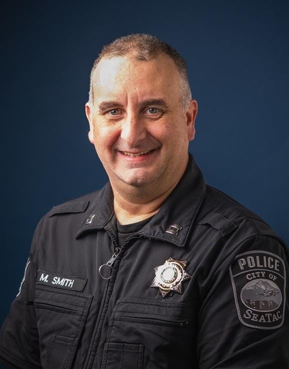 Captain Michael Smith is a lifelong Washington State native currently assigned to the City of SeaTac as a Captain with the King County Sheriff’s Office (KCSO). He currently serves as the City’s acting police chief. A veteran of the United States Air Force who served both before and after September 11, 2001, Captain Smith has been married for nearly 31 years and has two children. In June, he will mark 25 years of service with the King County Sheriff’s Office.