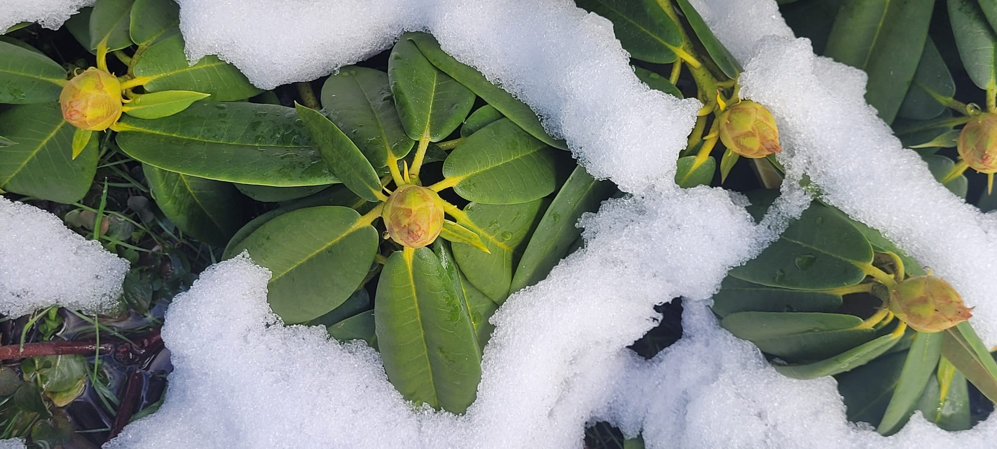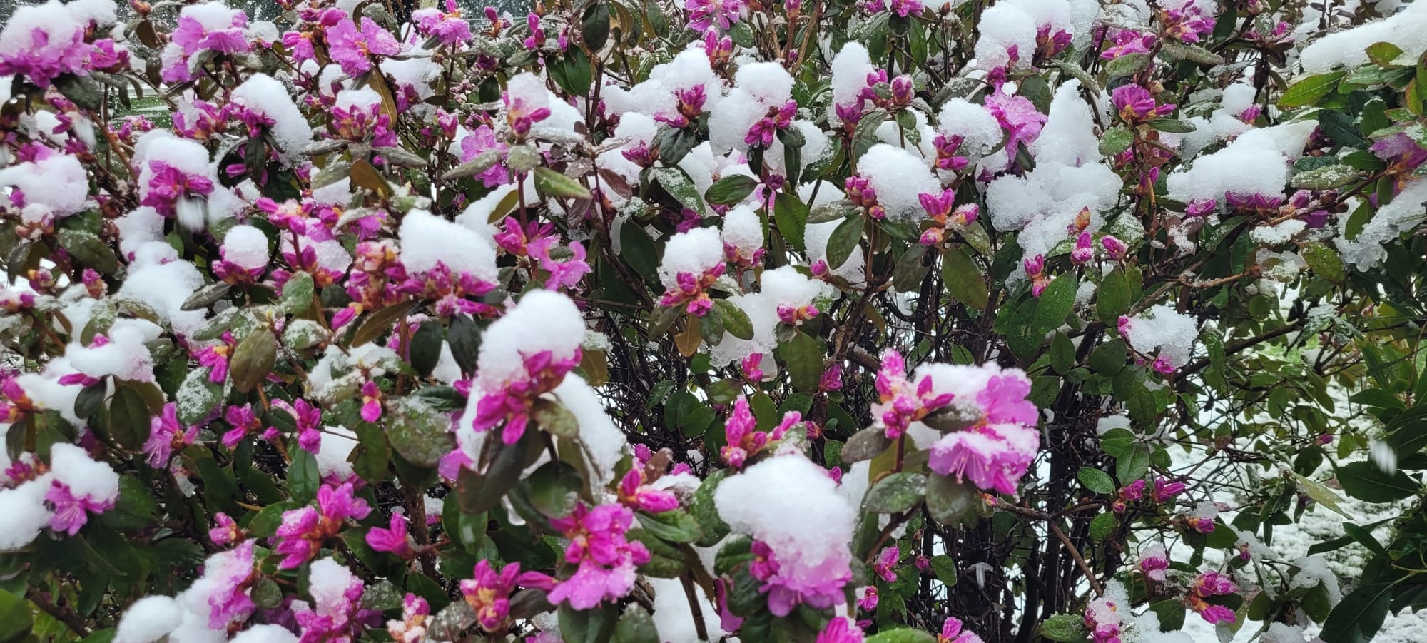 Heavy snow covered early spring flowers across the Highline area, creating striking scenes as Pacific Northwest blooms endured winter’s final surprise.