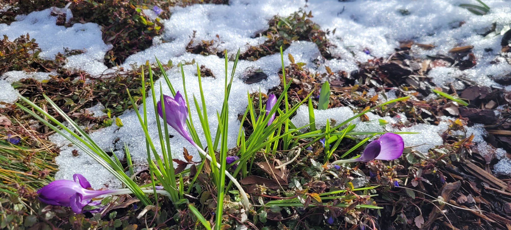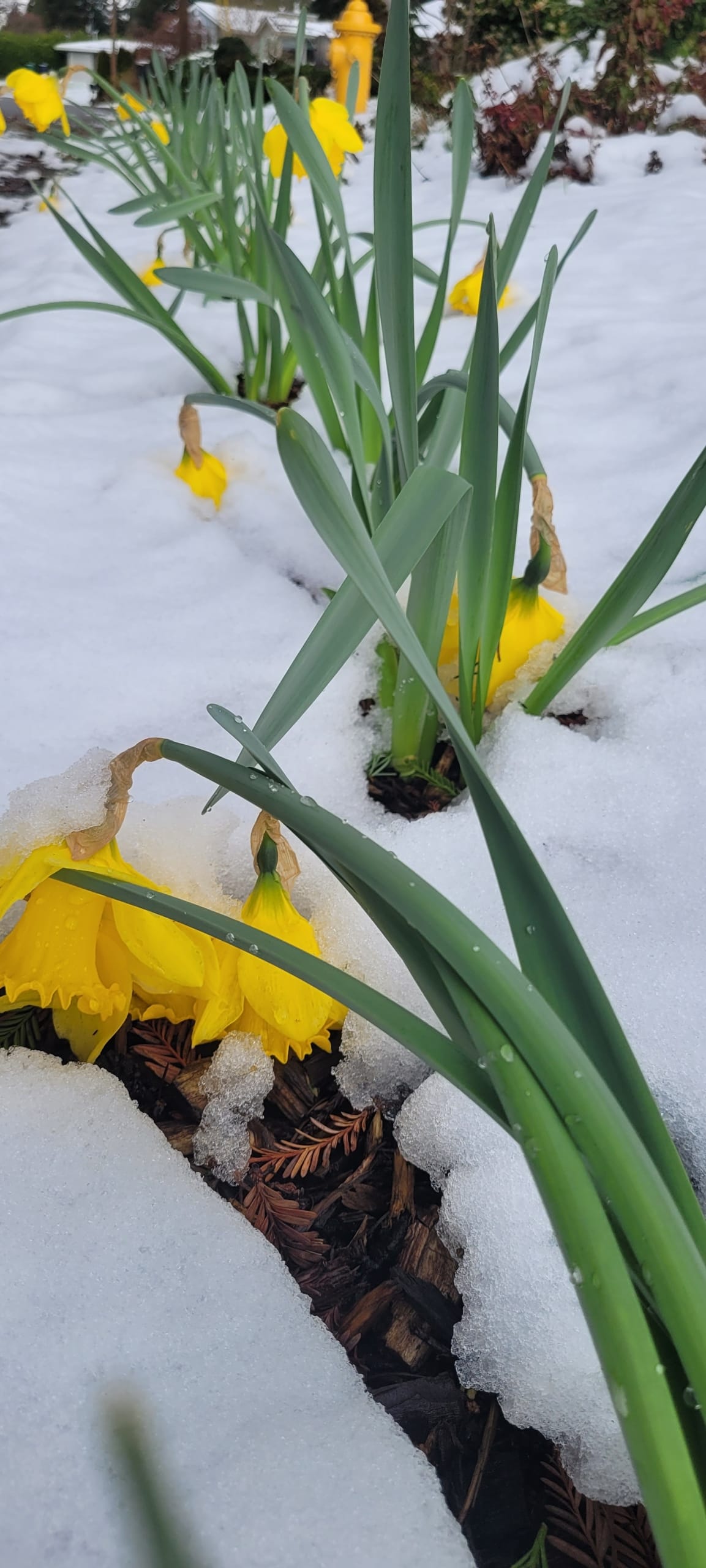 By Monday afternoon, the white blanket had largely melted away, and the flowers stood upright again, resilient and ready to herald the arrival of spring.