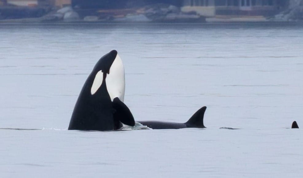 Hongming Zhing, an active participant in the Orca Community Network Facebook Group, took this amazing photo of a visiting Orca checking out Three Tree Point on April 1.