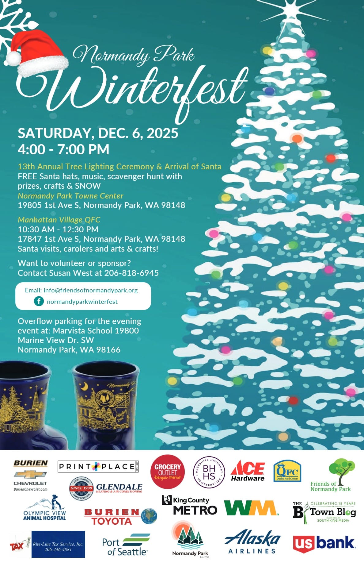 Normandy Park is gearing up for one of its most cherished holiday traditions as Winterfest returns on Saturday, December 6, 2025. From 4:00 to 7:00 p.m., families, neighbors, and visitors are invited to gather at the Normandy Park Towne Center for an evening filled with festive cheer, community spirit, and the magic of the season.